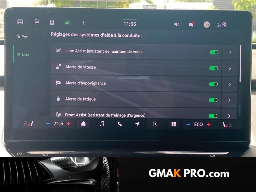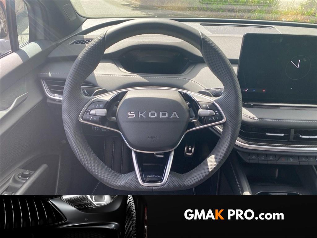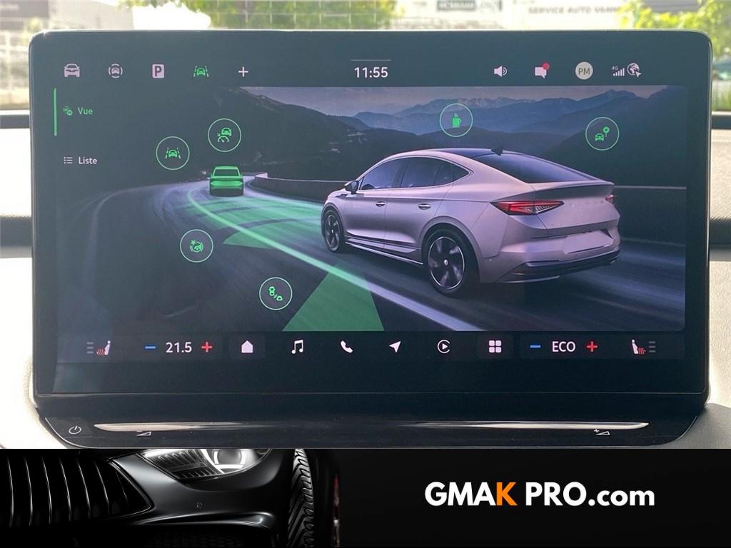 2 prises usb-c 45w à l'av (recharge et transfert de données) et 2 prises usb-c 45w à ar (recharge uniquement)3 appuie-têtes ar8 hpAccoudoir central ar avec porte-gobelets + trappe pour le transport d'objets long à l'arAccoudoir central avAirbag central av entre les 2 sièges, airbags latéraux (thorax) dans les sièges av et ar airbargs rideaux (tête) av et arAirbags frontaux conducteur et passager av (dont passager déconnectable)Alarme antivol - protection volumétrique de l'habitacle et anti-remorquageAppel d'urgence - ecallAppuie-tête av intégrés dans les sièges sport, non réglablesAssistance 24 h/24 pendant 7 ansAumônières au dos des sièges av avec emplacement pour smartphoneAvertisseur sonore 1 tonAvertisseur visuel et sonore de ceinture de sécurité non-boucléeBacs de rangement dans les portes av et ar (pour une bouteille de 1,5l)Badge sportline sur le hayon de coffreBanquette ar non divisée et dossiers divisés rabattables (2/3 - 1/3)Banquette ar rabattable automatiquement depuis le coffre à bagagesBas de caisse couleur carrosserie spécifique sportline et rsBatterie garantie 8 ans ou 160000 km (à au moins 70 % de sa capacité d'origine)Boîte à gants inférieure côté passager fermée et éclairéeCable de recharge mode 3 type 2 (32 a)Caméra de reculCeintures de sécurité ar 3 pointsCeintures de sécurité av à 3 points, réglables en hauteur, avec prétensionneursCiel de pavillon noirClimatisation automatique climatronic tri-zonesCommande vocaleCompartiment de rangement à gauche sous le volantCompartiment de rangement amovible sur le tunnel arCompartiment de rangement sous la console centraleCompartiments de rangement dans l'accoudoir central avConsole centrale av intégrant un espace de rangement et 2 porte-gobeletsContrôle de la pression de pneusCoques de rétroviseurs extérieurs noir glossyCouvre coffre (planche)Crew protect assist - système pro-actif de protection des passagers av et ar, pré-tend les ceintures de sécurité en cas de danger et ferme presque complètement les vitres latérales pour éviter que des objets extérieurs n'entrent dans l'habitacleCrochets de fixation dans le coffreDab (digital audio broadcasting) - radio numeriqueDesign intérieur sportline sellerie tissu suédine noir perforé, matériau synthétique noir et surpiqûres grises et noiresDétails intérieur en unique dark chrome (rendu alu mat) - buses de ventilation, poignées de portes, lettrage sur le volantDétecteur de fatigueDétecteur de pluie et de lumièreDigital cockpit 5,3" : compteurs digitaux personnalisablesDirection dynamique progressiveDispositif phonebox - recharge par induction réfrigérée pour 2 téléphones délivrant une puissance de 15w par téléphoneDriving mode select : sélection des profils de conduiteEclairage au niveau des poignées de porte intérieures av/ar et catadioptres au niveau des portesEclairage d'ambiance intérieur personnalisable (tableau de bord, contre portes av/ar et éclairages aux pieds av/ar)Eclairage dans le coffre (2 lampes)Eclairage de l'espace aux pieds av/arEclairages dans le ciel de toit à av et à arEcran d'info-divertissement 13''Emergency assist (inclus avec le travel assist): - réduit le risque d'accident, en cas de malaise du conducteur la voiture le détecte et l'assistant d'urgence s'active en faisant décélérer la voiture jusqu'à son arrêt complet, en la maintenant sur sa voie avec les feux de détresse, le klaxon et l'écEntourage des vitres noir glossyEsc (incluant abs, ebd, msr, asr, xds+, hba, dsr et mkb)Essuie-glace av à intermittence incluant des buses de lavageFace av "tech-deck"Feu ar antibrouillardFeux ar led avec clignotants à défilementFeux de jour avec allumage automatique des projecteurs, fonction ''coming home'' et ''leaving home'' (temporisation de l'éclairage extérieur)Fixations ''isofix'' + top tether aux places extérieures ar pour sièges enfantFixations ''isofix'' place passager av pour sièges enfantFrein à main électrique avec assistant de démarrage en côteFreins à disques avFreins à tambours arFront assist - système de sécurité anti-collision, avertissement et aide au freinage d'urgence pour véhicules, piétons et cyclistesGarantie 2 ans / kilométrage illimitéGénerateur de son e-noiseGratte-givre dans le hayon de coffreHayon de coffre électrique incluant ouverture mains-libres (virtual pedal)Insert décoratif effet carbone sur planche de bord / contreportes habillage matériau synthétique noir sur planche de bord / contreportesJantes en alliage 20'' vega noires (av 235/50 r20 et ar 255/45 r20)Kessy advanced avec alarme système d'accès, de démarrage et arrêt du moteur sans clé avec fonction walk away locking, la voiture se verrouille/déverrouille lorsque vous vous en approchez/éloignezKit anticrevaison (outils)Lane assist + (travel assist) : maintien du véhicule au centre de la voie assistant de ronds-points et virages dangereuxLettrage av et ar noir glossyLogo d'accueil skoda projeté sous les portes avLunette ar dégivranteMesures de réduction du bruitPalettes au volant pour sélection du freinage régénératifPare-brise athermiquePare-chocs av/ar couleur carrosserie spécifique sportlinePare-soleil pour vitres ar intégrés dans les portièresPare-soleils av éclairés avec miroir de courtoisiePédalier look aluminiumPeinture uniePhares av full matrix led avec système d'éclairage auto-adaptatif afs, feux antibrouillard avec fonction corner lights, welcome effectPlancher de chargement variablePoignées de maintien av et ar avec crochets pour vêtementsPorte tickets sur le pare-brisePréparation attelagePrise 12 v dans le coffreRadars de stationnement av/ar avec assistance à la manoeuvre (stoppe la voiture pour eviter une collision lors d'une manoeuvre)Range-parapluie dans les portes av (incluant un parapluie côté conducteur)Régulateur de vitesse adaptatif/prédictif acc (actif jusqu'à 210 km/h - incluant la fonction limiteur de vitesse pré