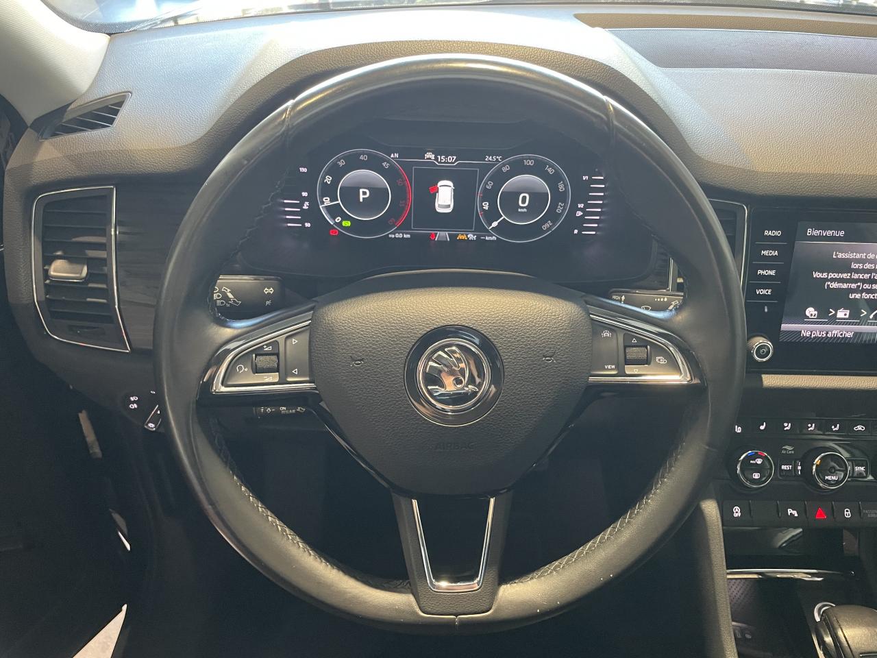 2 éclairages à l'avant, 1 central à l'arrière2 liseuses à l'avant2 supports de tablettes au dos des sièges avant3 appuie-tête arrière8 haut-parleursAccoudoir central arrière avec porte-gobeletAccoudoir central avant avec rangement Jumbo Box, porte-gobelets et prise 12VAide au stationnement avant/arrièreAirbag genoux conducteurAirbags frontaux conducteur et passager (déconnectable côté passager)Airbags latéraux (thorax) dans les sièges avantAirbags rideaux (tête) avant et arrièreAnti-patinage électronique ASRAppel d'urgence - EcallAssistance 24/24 H pendant 7 ansBacs de rangement porte-bouteilles 1 l dans les portes arrièreBacs de rangement porte-bouteilles 1,5 l dans les portes avantBanquette arrière 60/40, rabattable et coulissante sur 180 mm avec fonction easy-entryBlocage de l'arrivée de carburant en cas d'accidentBlocage électronique de différentiel EDSBoîte à gants réfrigéréeCaméra de reculCamera de recul, Feux arrière full LedCargo-éléments dans le coffreCeintures de sécurité arrière 3 pointsCeintures de sécurité avant 3 points, réglables en hauteur, avec prétensionneursClimatisation automatique bi-zone “Climatronic"Commutateur de phares chroméCompartiments de rangement latéraux dans le coffre, derrière les passages de rouesContrôle de pression des pneus ( TPMS )Couvre-coffre à enrouleur avec position intermédiaireDéblocage automatique des portes et activation des feux de détresse en cas d'accidentDirection assistée asservie à la vitesseDSR : contrebraquage assistéEBV : Répartiteur électronique de freinageEchappement invisibleEclairage des caves à pieds avantESC (Correcteur électronique de trajectoire)Essuie-glace arrière incluant des buses de lavageEssuie-glace avant AERO à intermittence incluant des buses de lavageFeux arrière antibrouillard à LEDFeux arrière full LED et éclairage de la plaque minéralogique à LEDFeux de jour à LEDFiltre à pollenFixations ISOFIX aux places arrière extérieures pour sièges enfantsFrein de parking électrique avec fonction Auto-HoldGarantie 2 ans Kilométrage illimitéGrille de calandre noire avec encadrement chroméHBA (système hydraulique d'assistance au freinage)HHC (assistance au démarrage en côte)Indicateur de température extérieureInfotainment Online 1 an + Care Connect 1 anInserts décoratifs noir veinéInterface multimédia USB compatible Apple connectivityJantes alliage 18" "ELBRUS"Jeu de filets dans le coffreKessy FULL: système d'autorisation d'accès, de démarrage et d'arrêt du moteur main-libreKit anti-crevaisonKlaxon bi-tonLimiteur de vitesseLumières de courtoisie à l'avant et à l'arrièreLunette arrière dégivranteMKB (système anti multicollision)MSR : Régulateur de couple d'inertie moteurOrdinateur de bord grand écran "Maxi-Dot" couleurPack chromePack d'éclairage d'ambiance intérieur à LEDPack VisibilitéPare-chocs couleur carrosseriePare-soleil éclairésPeinture opaque Bleu EnergiePetit pack cuirPhares antibrouillard avant intégrésPhares avant Full LED avec système d'éclairage auto-adaptatif AFS,feux antibrouillard avec fonction Corner lights, Lave-phares téléscopiquesPoignées de porte intérieures chroméesPommeau de levier de vitesses noir glossy, contour chroméPréparation pour crochet d'attelagePrise 12V dans le coffreProtection contre les erreurs de choix de carburantProtection des passages de roue avant et arrière noir mat (plastique)Rampes de pavillon argentRange-parapluie dans les portes avantRangement fermé côté conducteurRégulateur de vitesse adaptatif, contrôle de la vitesse jusqu'à 160km/hRétroviseur intérieur électrochromatique + Light Assist (Coming Home , Leaving Home, Allumage automatique des phares, Feux de jour) + Détecteur de pluieRétroviseurs et poignées de portes de couleur carrosserieRétroviseurs extérieurs électriques électrochromes à mémoire dégivrants rabattables, automatiques avec rappel de clignotants et éclairage du solRideaux pare-soleil manuels pour les vitres arrièreSellerie cuir/suède noirSeuils de portes avantSide Assist - Système de détection des angles mortsSiège conducteur à réglage électrique et à mémoire avec réglage lombaire électriqueSiège passager réglable en hauteur manuellementSièges avant chauffantsSignal sonore de ceinture non boucléeSpoiler arrière avec 3ème feu stop intégréSupport de gilet de sécurité dans le panneau de porteSupport-ticket sur le montant ASystème antiblocage des roues (ABS)Système de navigation AMUNDSEN 8" couleur tactile 2,5D (SD, USB, AUX in, Bluetooth, SmartLink, WLAN hotspot). Cartographie Europe de l'Ouest surs/carte SD.Commande vocale, Amplificateur électronique de voix. Infotainment Online 1 ansSystème de reconnaissance des panneaux de signalisation TSR (Traffic Sign recognition)Système Front AssistSystème Smartlink (Mirrorlink, Android Auto, Carplay, SmartGate)Système Start/ Stop avec récupération d'énergie de freinageSystème téléphone mobile BluetoothTapis de sol textileVerrouillage centralisé à distance (2 clés)Virtual Pedal : ouverture mains-libres du coffre à bagages incluant le Hayon de coffre à ouverture et fermeture électriquesVitres électriques avant-arrière avec fonction confort et sécurité enfantVitres latérales et lunette arrière surteintéesVolant multifonction 3 branches réglable en hauteur et profondeur