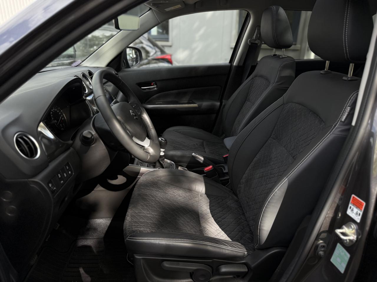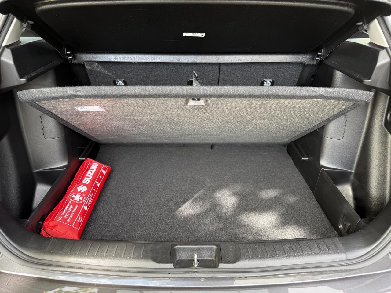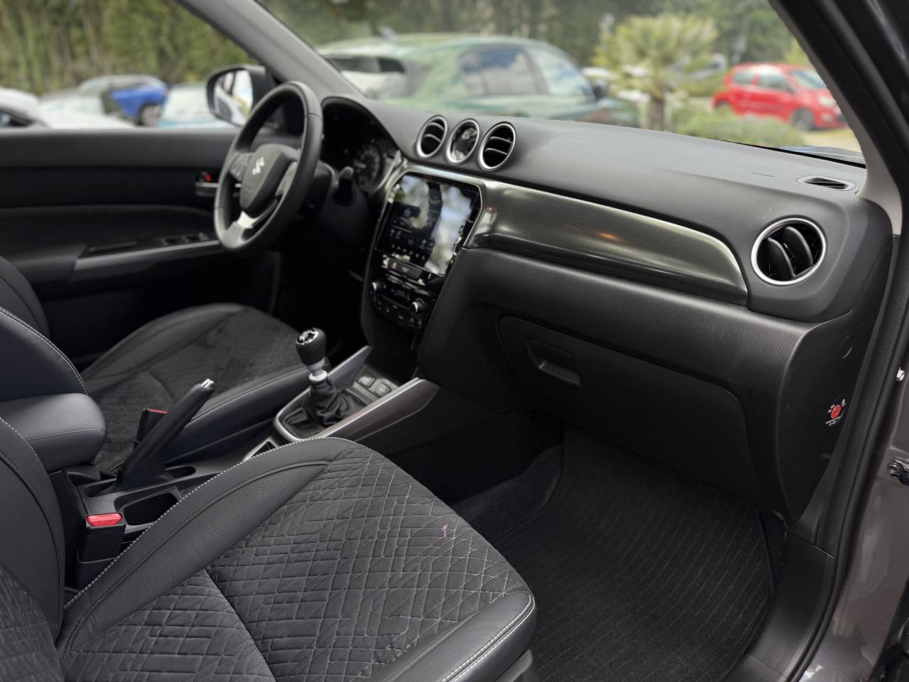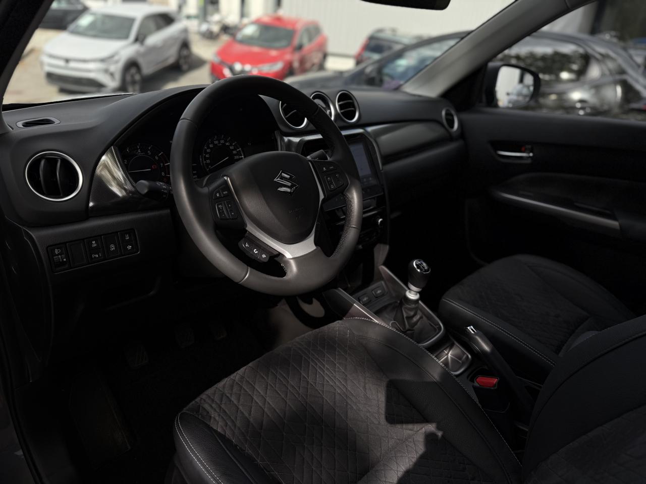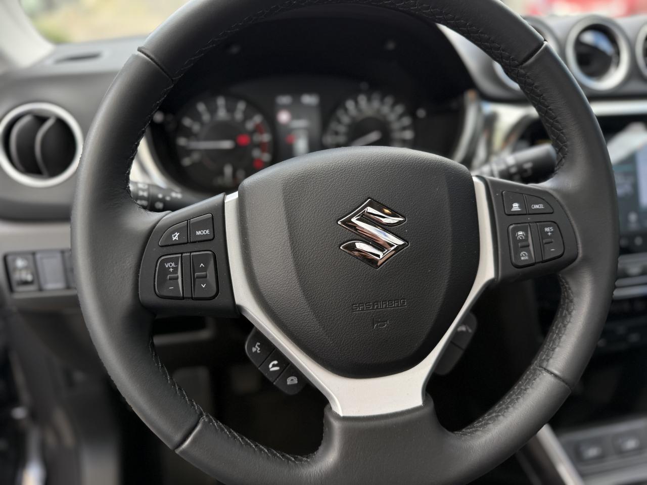 3 appuie-tête arrièreABS avec répartiteur de freinage EBDAccoudoir central avantAccoudoir de porte en cuir synthétiqueAffichage du non bouclage des ceintures de sécurité aux places arrièreAide à la correction de trajectoireAide au démarrage en côteAide au maintien dans la voieAir conditionné automatique avec filtre anti-pollenAirbag frontaux conducteur et passagerAirbags latéraux conducteur et passager avantAirbags rideauxAlarme de sécuritéAlarme sonore d'oubli d'extinction des feux et/ou du retrait de la clef de contactAlarme sonore et visuelle de non-bouclage des ceintures de sécurité aux places avantAlarme sonore porte mal ferméeAlerte de changement de trajectoireAlerte de franchissement de ligneAlerte de trafic en marche arrièreAllumage automatique des feux de détresseAllumage automatique des projecteursAncrage de siège enfants (x3) aux places arrièreAppel d'urgence - EcallAumônière au dos du siège passagerBanquette arrière rabattable 40/60Becquet de toit arrièreBoîte à gants à ouverture freinée et éclairéeBouclier avant noir avec jonc chroméBuse d'aération aux places arrièreCache-bagage rigideCalandre noire avec jonc chroméCapteurs de stationnement arrière (x4)Capteurs de stationnement avant (x4)Ceintures de sécurité arrière : 3 points avec prétentionneur et limiteur de force (places latérales)Ceintures de sécurité avant : 3 points ELR avec prétensionneur, limiteur de force et ajustables en hauteurCrochet de sacDétecteur d'angle mortDirection assistéeDispositif manuel de réglage de la hauteur des projecteursEclairage de l’habitacle lecteur de carte avant trois positionsEclairage de plancher aux places avantEclairage du coffre à bagagesEnregistreur de données d’évènements (EDR)Essuie vitre arrière 1 vitesse + intermittenceEssuie vitre AV 2 vitesses & intermittence réglableExtensions d'ailesFeux antibrouillardsFeux arrière à LEDFeux de jour à LEDFreinage actif d’urgence DSBS II avec détection des piétons, vélos et motosGarniture d'aile avant chroméeGestion automatique des feux de route /feux de croisementIndicateur échéancier du renouvellement de l'huile moteurInstrumentation analogique avec écran LCD 4,2’’Intelligent Speed Assist (Adaptation intelligente de la vitesse)Jantes 17’’ en alliage léger polies et pneumatiques 215/55Jauge de carburant avec témoin d'alerte de niveau basKit de réparation de pneumatiqueLève-vitres électriques arrièreLève-vitres avant électriques, impulsionnel côté conducteurLimiteur de vitesseLunette arrière dégivranteMédaillon de porte avant en suédineMédaillon et accoudoir de porte avant en tissuOrnement de contre-portes gris argentOuverture électromagnétique du hayonOuverture des portes & démarrage sans cléPédalier rétractable en cas de chocsPare-soleil avec porte ticket, miroir de courtoisie et éclairage (x2)Plancher de coffre modulablePoignées de maintien pour les passagersPoignées de portes couleur carrosseriePorte gobelet avant x2Porte-bouteilles au bas des portes (2 AV , 2 AR )Prédisposition pour l’installation d’un éthylotest antidémarragePrise 12V dans le coffrePrise USB et prise accessoire 12VProgramme de stabilité électronique (ESP)Projecteurs avant LEDRégulateur de vitesse adaptatifRétroviseur intérieur électrochromeRétroviseurs extérieurs électriques couleur carrosserie dégivrantRétroviseurs extérieurs rabattables électriquement avec répétiteur de clignotantRails de toit en aluminium anodisésRangement à lunettes dans le plafonnierReconnaissance des panneaux de signalisationRenforts latéraux dans les portesRepose-pied conducteurSécurité enfants aux portes arrièreSellerie suédine et cuir synthétiqueServices connectés SUZUKI CONNECTSiège conducteur réglable en hauteur, en profondeur et inclinableSièges avant chauffantsSystème de désactivation de l'airbag passager avantSystème de détection de somnolence, endormissement et distraction du conducteur (DMS)Système de fixation ISOFIX aux 2 places arrièreSystème de surveillance de la pression des pneumatiquesSystème multimédia avec écran tactile 9"Système Stop & StartTapis de sol x 4Toit ouvrant panoramiqueTroisième feu stopTweeters à l'avantVerrouillage centralisé côté conducteurVitres arrière surteintéesVolant 3 branches ajustable en hauteur et en profondeur avec commandes audio et kit mains libres BluetoothVolant 3 branches, gainé cuir