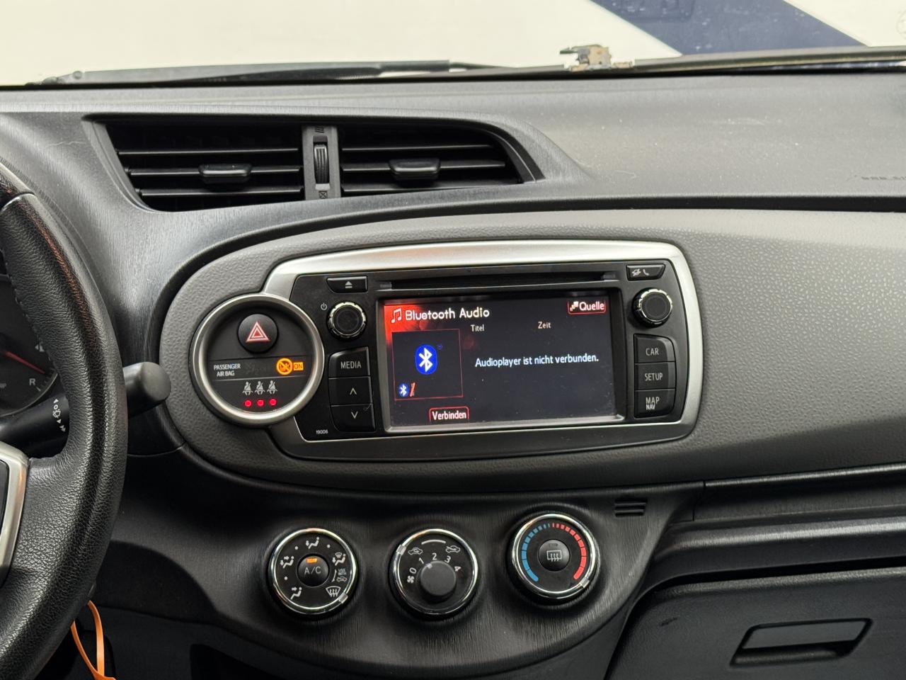 6 haut-parleurs7 airbagsAirbag passager déconnectableAppuie-tête avant et arrière règlables en hauteurBaguette de coffre chroméeBanquette arrière rabattable 40/60Calandre avant avec baguette chroméeClimatisation manuelleCommandes de l'autoradio au volantCompte-toursDirection assistée électriqueDouble plancher dans le coffreFermeture centralisée des portes à télécommandeFollow me homeJantes en acier 15” avec enjoliveurs “Hanaé”Kit de réparation anti-crevaisonOrdinateur de bordPoignées de portes et rétroviseurs extérieur couleurs carrosseriePrises auxiliaire et USBRégulateur et limiteur de vitesseRoue de secours temporaireSellerie tissu “Tribeca”Siège conducteur réglable en hauteurSystème audio CD compatible MP3 / WMASystème de fixation ISOFIX aux places latérales arrièreSystème Toyota Touch:caméra de recul compatibilité iPod, écran tactile 6,1” multi-fonctions système de téléphonie Bluetooth®Systèmes de contrôle de stabilité (VSC+) et de motricité (TRC)Systèmes de freinage ABS, EBD et BAVitres avant électriquesVolant et pommeau de levier de vitesse gainés de cuirVolant multifonctionsVolant réglable en hauteur et en profondeur