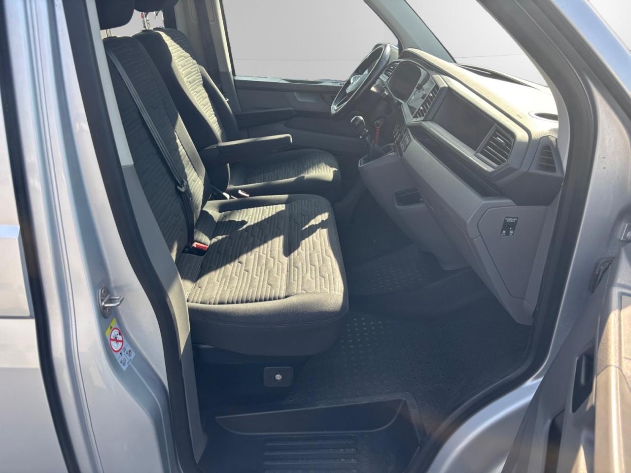 2 clés pliantes radiocommandées pour le système de verrouillage centralisé2 connexions USB (type C) dans le tableau de bord2 sièges avant individuels4 jantes en acier 6 1/2J x 16 en style à 20 trous6 haut-parleurs (2 tweeters et 2 woofers à l'avant et 2 larges bandes à l'arrière)Accoudoirs pour les deux sièges dans la cabineAffichage multifonction “Plus” avec écran noir-blancAfficheur de niveau d'eau de lave-glaceAide au stationnement avant/arrièreAirbags conducteur et passager désactivableAirbags latéraux et rideaux (conducteur et passager)Anti-démarrage électroniqueAntipatinage (ASR)Appel d'urgence - EcallAppuie-tête à l'avant, réglables en hauteurAppuis lombaires pour siège individuel gauche et droit dans la 1re RS (réglables tous les deux manuellement)Appuis-tête AR inclinables et réglables en hauteurAssistant de compensation du vent latéralAssistant de démarrage en côteAvertisseur sonore un tonBoîte à gants éclairéeBoitiers de rétroviseurs et poignées de portes peints dans la teinte de la carrosserieCar-Net "App-Connect"Châssis 16" avec frein à disque 16" à l'avant et frein à disques 16" à l'arrièreCharnières pour portes arrière/hayon en version normaleChauffage d'appointClignotants latéraux avec inscription «Caravelle»Climatisation ‘Climatronic’ 3 zones avec filtre anti-allergèneColonne de direction réglable en hauteur/profondeurCombiné d'instruments (km/h); affichages de vitesse, compteur total./ journalier, régime, niveau, carburant, heureCommande intermitante d'essuie-glace de pare brise (4 vitesse)Détecteur de fatigueDirection assistée électromécaniqueEclairage de jourEclairage des cadrans et des commandes, avec gradateurEclairage du marchepied dans le compartiment passagers/chargeEclairage LED dans compartiment passagerEDS (blocage électronique de différentiel)Enjoliveurs pleinsFenêtre coulissante à l'avant et fenêtre fixe à l'arrière, dans le compartiment de charge/passagers à droite et à gaucheFermeture du hayon avec fonction de déverrouillage de l’intérieurFeu arrière de brouillardFeux arrière en version standardGarniture de plancher en moquette dans la cabineGarniture de plancher en moquette dans le compartiment passagersGarnitures de siège en tissu, dessin "Circuit"Grille de calandre, peinte en Noir, avec cinq baguettes chroméesHayon arrière vitré avec verre athermique, dégivrant, et essuie-glace/lave-glace arrièreInterface pour téléphone portableLève-glaces électriqueLimiteur de vitesseMiroir de courtoisie côté conducteur et passager avant éclairéOeillets d'arrimage pour la fixation de la chargeOutillage de bord et cricPack 8 places = 2-3-3 ZM7Pare-Brise feuilleté AthermiquePare-chocs teinte carrosseriePare-soleil avec miroir, étiquette d'airbag sur le pare-soleil du passager avantPavillon confort dans la cabine et pavillon à circulation d’air avec diffuseurs toit dans compartiment passagersPeinture uniePneus 215/65 R16 C 106/104T, à résistance au roulement optimiséePoids total admissible 3080 kgPorte coulissante à droite dans l'espace passagersPrise 12VProjecteurs doubles halogèneProtection de seuil de chargement en plastiqueRéglage en hauteur pour sièges individuels gauche et droit dans la cabineRégulateur de vitesseRéservoir 70 LRétroviseur extérieur droit convexeRétroviseur extérieur gauche convexeRétroviseur extérieur, réglable et dégivrant électriquementRétroviseur intérieur de sécurité à réglage jour/nuitRevêtement de porte sans peintureRoue de secours (acier) avec pneu normalSécurité enfant à reglage electriqueSièges conducteur et passager 'Confort' : Réglables en hauteur avec soutien lombaire et accoudoirsStores pare-soleil sur les fenêtres latérales dans le compartiment passagersSystème Audio & Infotainment ‘Composition Colour’ avec écran couleur tactile 6,5’’Système d'ancrage ISOFIX (2ème rang)Système de contrôle de la pression des pneusSystème de contrôle de trajectoire (ESP), Antiblocage des roues (ABS) et Assistance au freinage d'urgence (AFU)Système de surveillance périmétrique "Front Assist" avec freinage d'urgence en villeSystème Start/ Stop avec récupération d'énergie de freinageTableau de bord standard avec partie inférieure en teinte PalladiumToit normal avec 8 fixations pour galeries porte-bagagesTop Tether pour 2e rangée de siègesVerrouillage centralisé à distance avec commande intérieureVersion non fumeur avec prise 12V et porte-gobeletsVolant multifonctions à 3 branches en cuir