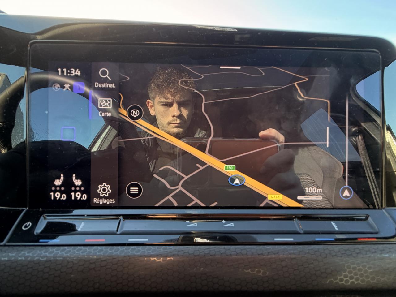 - Volant sport multifonction en cuir spécifique GTI avec commandes tactiles, retour haptique