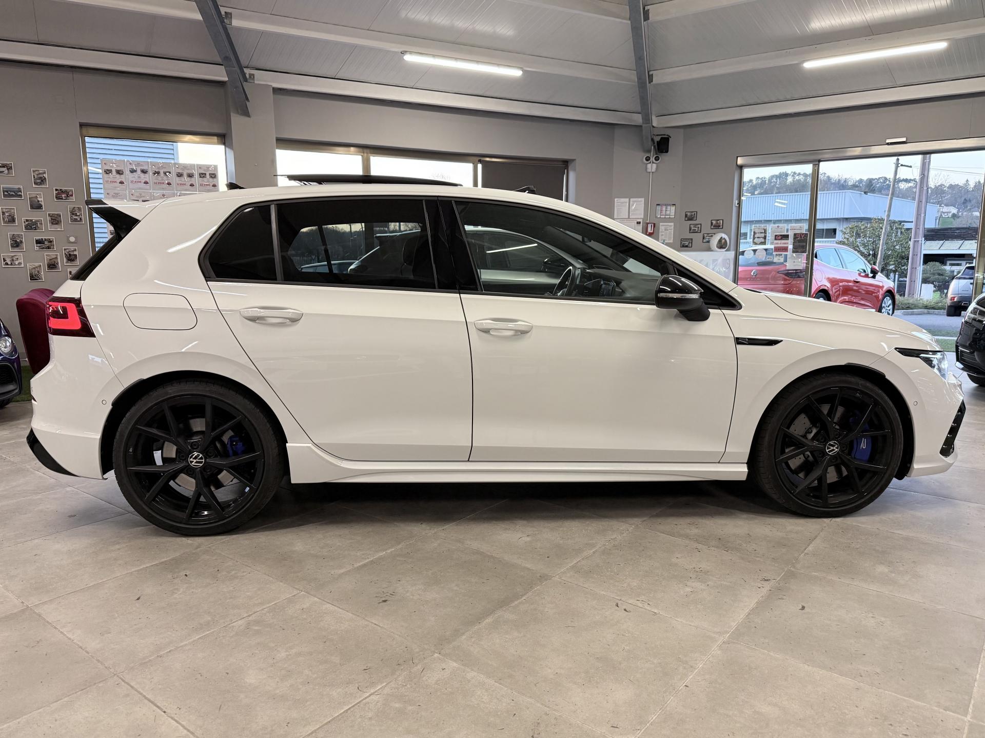 ‘Keyless Access Advanced’ sans alarme : Système de verrouillage/déverrouillage et de démarrage sans clé2 interfaces USB-C à l'avant et 2 prises de chargement USB-C derrière l’accoudoir pour les passagers arrière2 spots de lecture à l'avant et à l'arrière7 haut-parleursAccoudoir central arrière rabattable et deux porte-gobeletsAccoudoir central avant réglable en hauteur et en profondeur avec compartiment de rangementActivation automatique des feux de détresse en cas de freinage d'urgenceAirbags conducteur et passagerAirbags de «tête» passagers avant et arrièreAirbags latéraux avantAlerte de perte de pression des pneusAntipatinage électronique ASRApp-Connect sans filApplications décoratives "Carbon Grey" pour le tableau de bord et les revêtements de porte à l'avantAppuis-tête AV et AR réglables en hauteurAssistance au contrebraquageAssistance au freinage d'urgenceAssistant de changement de trajectoire "Side Assist"Banquette arrière rabattable 2/3 - 1/3 avec trappe à skisCâble adaptateur USB-C vers USB-ACache-bagages amovibleCeintures de sécurité automatiques avant trois points à enrouleur, réglables en hauteur, avec prétensionneursChâssis sport spécifique ‘R’Ciel de pavillon noir soulClimatiseur "Air Care Climatronic" 3 zones et filtre anti-allergène et éléments de commandes à l'arrièreCompartiment de rangement et prise 12 V à l' AVContrôle vocal intuitifCoques de rétroviseurs extérieurs chrome mat, avec support noirCorrecteur électronique de trajectoire ESPDiffuseur arrière spécifique ‘R’ laqué noirDigital Cockpit Pro avec ‘R-View’ permettant d’afficher : puissance, couple, pression de suralimentation, compte-tours et accélèromètreDirection progressive spécifique ‘R'Double sortie d'échappement chromée à gauche et double sortie d'échappement chromée à droiteE-call : Appel d’urgence manuel ou automatiqueEclairage à LED de la plaque d'immatriculation arrièreEclairage d'ambiance - 30 couleurs et éclairage de plancher à l'avantEclairage d'ambiance extérieur : poignées de portes éclairées et éclairage périmétrique avec projection du logoEclairage de plancher à LED à l'avant avec possibilité de sélectionner la couleur d'éclairageÉtriers de freins bleus à l’avant et à l’arrière avec logo ‘R’ à l’avantFatigue Detection : Système de détection de fatigue du conducteurFeu arrière de brouillard d’un côté, feux de recul des deux côtésFixation pour siège enfant ISOFIX (arrière, x2)Frein de stationnement électromécanique avec fonction d’immobilisation en pente ‘Auto hold’ et assistant de démarrage en côteFreins à disque 18” à l’avant et 17” à l’arrièreFront assist avec freinage d’urgence et détection de piétonsIndicateur de température extérieure avec avertisseur de gelInterface Bluetooth pour téléphone portable (mains-libres)Interface téléphonique avec fonction de charge inductiveKit de dépannage : compresseur 12 volts et produit d'étanchéité de pneuLane Assistant : assistant de maintien dans la voieLave-essuie-glace arrière à balayage intermittentLiseré bleu dans la calandre et les pharesMesures supplèmentaires de protection des piètonsMiroirs de courtoisie éclairés intégrés aux pare-soleilMiroirs de courtoisie intégrés aux pare-soleilMonogrammes ‘R’ sur la calandre et le hayon, badges ‘R’ sur les ailes avantPack Travel Assist: combinaison du Lane Assist, du Side Assist, du Régulateur de distance et de l'Emergency Assist qui interagissentPack visibilitéPare-chocs avant et arrière spécifiques ‘R'Park Assist : Système d'assistance au stationnement en créneau et en batailleParkPilot : Système d’aide au stationnement avant/arrière avec signaux sonores et visualisation de la distance des obstacles sur l’écranPédalier et repose-pied en acier inoxydable brosséPoignées de portes couleur carrosseriePommeau de levier de vitesses en aluminiumPréparation We Connect et We Connect PlusPrise 12V dans le coffreProjecteurs antibrouillard dans le bouclier avant et feux de braquageProjecteurs IQ.Light - Matrix LEDProtection antidémarrageRear Assist : Caméra de recul avec visualisationRéception radio numérique DAB+Régulateur de vitesse adaptatif et prédictif 'ACC' jusqu’à l’arrêt completRégulateur électronique de couple MSRRépartiteur électronique de freinage EBVRétroviseur intérieur électrochromeRétroviseurs extérieurs rabattables et réglables électriquement, avec fonction mémoire et dégivrage séparéSélection du profil de conduiteService d’appel d’urgence (inclus 10 ans et disponible indépendamment de l’inscription dans le système d’infotainment)Siège du conducteur avec réglage en hauteurSiège passager réglable manuellement en hauteurSièges sport à l’avant spécifiques ‘R’ avec appuis-tête intégrés, sellerie en tissu ‘Sardegna’ et microfleece ‘ArtVelours'Sign Assist: Reconnaissance des panneaux de signalisation et affichage sur le ‘Digital Cockpit’ et l’écran du système de radionavigationSystème d'antiblocage des roues ABSSystème de Freinage anti-multicollisionSystème Navigation & Infotainment ‘Discover Media’ avec «Services de streaming et radio via Internet»Système Start/ Stop avec récupération d'énergie de freinageTapis de sol avant et arrièreTechnologie Car2XTémoin et alerte sonore de non-bouclage des ceintures de sécurité avant et arrièreTransmission ‘4MOTION’ avec repartition vectorielle de couple ‘R-Performance’Verrouillage centralisé avec télécommande à fréquence radio par clé rétractableVitres arrière et lunette arrière surteintées à 65%Vitres avant et arrière électriquesVolant multifonction en cuir ‘R-Performance’, chauffant, avec touche ‘R’ rétroéclairée en bleu et palettes au volant plus grandesVolant réglable en hauteur et en profondeurXDS : Système agissant comme un différentiel autobloquant éle