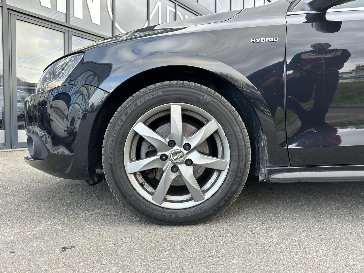 2 liseuses à l'avant, cerclées de chrome, et 2 à l'arrière2 porte gobelets à l'avant3 appuie-tête arrière réglables en hauteurAccoudoir central à l'arrière avec deux porte-boissons et trappe à skisAccoudoir central avant avec compartiment de rangementAide au stationnement avant et arrière avec signaux sonores et visualisation de la distance des obstacles sur l'écran de la radioAlerte de perte de pression des pneusApplications chromées sur le sélecteur d'allumage des feux et les boutons de commande de la climatisationBaguettes chromées soulignant les vitres latéralesBoîte à gants réfrigéréeBoîte à gants verrouillable éclairéeBoitiers de rétroviseurs et poignées de portes peints dans la teinte de la carrosserieBoucliers avant et arrière peintsCalandre spécifique Hybrid, plus aérodynamiqueClignotant Confort (1 impulsion = 3 éclairs)Climatisation automatique ‘Climatronic' bi-zone, réglable séparément pour conducteur et passagerCombiné d'instruments incluant : tachymètre, compte-tours, compteur kilométrique et totalisateur journalier, témoins d'alerte, indicateur d'intervalle de révisionConsole de pavillon avec 1 compartiment de rangement ouvertCorrecteur électronique de trajectoire ESP et aide au démarrage en côte 'Hill-Hold', avec amplificateur de freinage, ABS avec EBV, anti-patinage électronique ASR, blocage électronique de différentiel EDS, régulateur électronique de couDéclenchement automatique des feux de détresse lors d'un freinage d'urgenceDeux prises 12V sur la console (1 à l'avant, 1 à l'arrière)Direction assistée électromécanique asservie à la vitesse (selon motorisation)Dispositif anti-démarrage électroniqueDispositif de fixation pour deux sièges enfants suivant normes 'ISOFIX' aux places latérales arrièreDisques de frein à l'avant et à l'arrière, ventilés à l'avantEntourage chromé des compteurs et des aérateurs sur la planche de bordFeux arrière design type LEDFeux de circulation de jourGrilles de calandre supérieure et de prise d'air inférieure de couleur noireIdentifications «Hybrid» sur la calandre, les ailes et la malle arrièreInterface Bluetooth pour téléphone portable (mains-libres)Lunette arrière dégivranteMiroirs de courtoisie éclairés dans les pare-soleil à l'avantOrdinateur de bordOuverture à distance du coffre depuis la portière conducteur ou depuis la télécommandePack 'Visibilité'Pommeau cuir spécifiquePrise 12V dans le coffreProjecteurs antibrouillard avant avec éclairage statique d'intersectionRégulateur de vitesseRétroviseurs extérieurs rabattables électriquementRétroviseurs extérieurs réglables électriquement et dégivrants, asphérique côté conducteurSellerie en tissu «Garden»Siège conducteur réglable en hauteurSiège passager avant réglable en hauteurSièges avant Confort, avec appuis lombaires réglablesSpoiler arrièreSuivi du flux d'énergie sur le tableau de bord et l'écran de la radio (le cas échéant, sur l'écran du GPS)Tapis de sol spécifiques «Hybrid»Ventilation avec filtre à charbon actifVerrouillage centralisé à distance (y compris trappe de remplissage de carburant) avec deux clés-boitiers de télécommande incluant une touche d'ouverture du coffre à distanceVitres avant et arrière électriques à fonction anti-pincementVolant cuir, pommeau de levier de vitesses et poignée de frein à main gainés de cuir et autres matériauxVolant multifonctions et grand ordinateur de bordVolant réglable en hauteur et en profondeur
