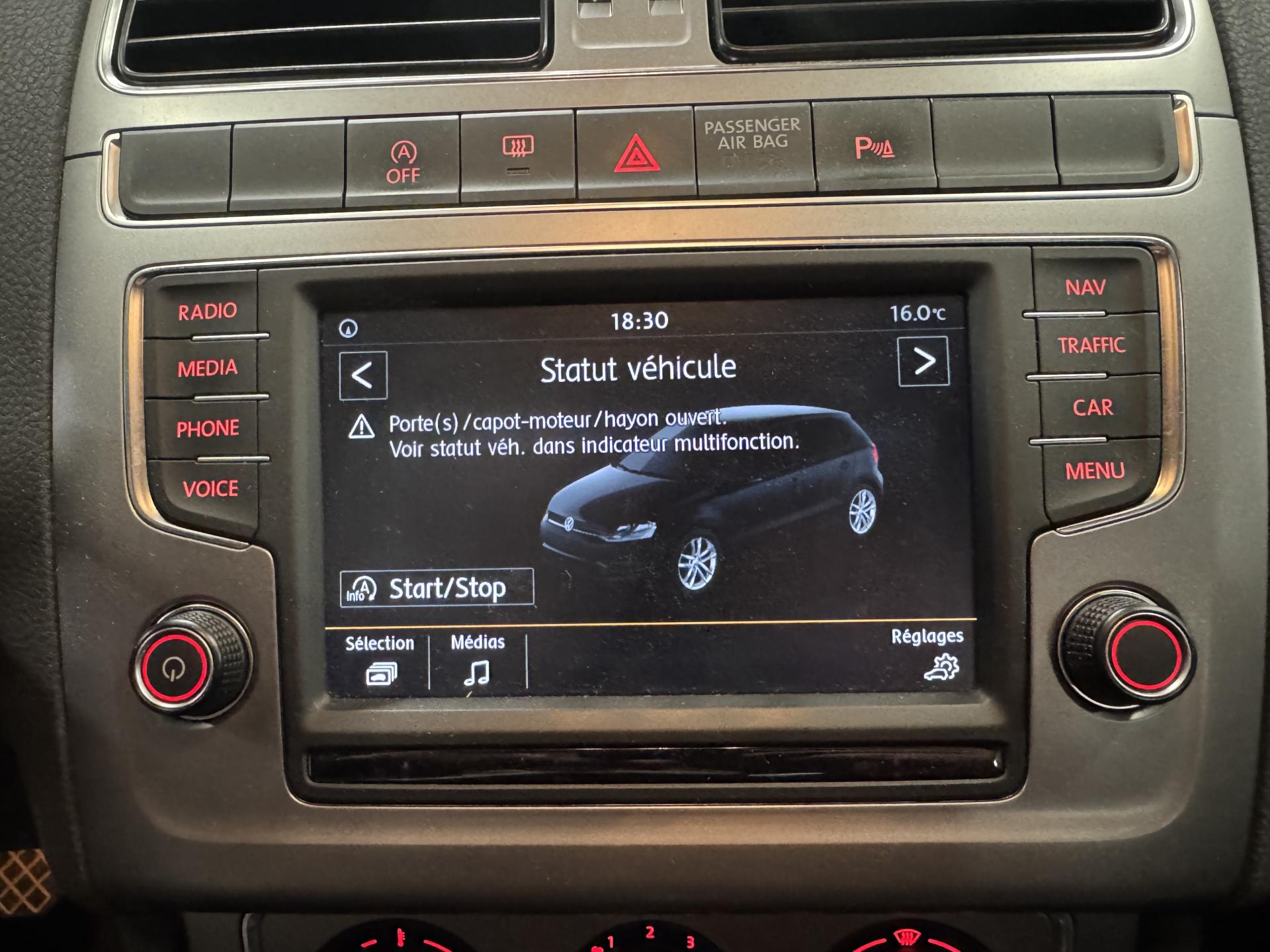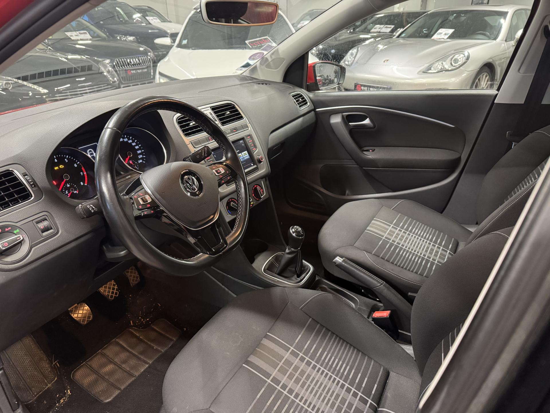 ‘Fatigue Detection' : Système de détection de fatigue du conducteur qui analyse le comportement du conducteur et recommande un temps de repos par l'apparition d'un message visuel et sonore3ème feu stop surélevé4 jantes en alliage léger 15'' ‘Novara', pneumatiques 185/60 R15 avec écrous antivolAide au démarrage en côte ‘Hill-Hold'Airbag frontaux conducteur et passagerAirbags latéraux/tête avantAlerte de perte de pression des pneusAntenne arrière de pavillonAnti-patinage électronique ASRApplications décoratives ‘argent foncé satiné' sur la console centraleAppuis-tête (3) et ceintures de sécurité 3 points (3) sur la banquette arrièreAppuis-tête à sécurité optimisée à l'avant (2)Aumônières au dos des sièges avantAvertisseur sonore de non-extinction des phares et de non bouclage des ceintures de sécurité (conducteur et passager)Avertisseur sonore deux tonsBacs de rangement dans toutes les portières, à l'avant avec porte-boisson pour des bouteilles à 1,5LBadges spécifiques ‘Lounge'Banquette et dossier arrière asymétriques, rabattables 1/3-2/3, avec double plancher de coffre à bagagesBlocage électronique de différentiel EDSBoîte à gants réfrigéréeCache-bagagesCarrosserie entièrement galvaniséeCeintures de sécurité trois points à l'avant, à enrouleur avec prétensionneurs, réglables en hauteurClignotant confort (1 impulsion = 3 clignotements)Clignotants latéraux intégrés dans le rétroviseurClimatisation manuelle 'Climatic'Correcteur électronique de trajectoire ESP avec amplificateur de freinage d'urgenceCrochet pour sacs dans le coffre à bagagesDéflecteur de toit intégréDirection assistée électro-mécanique asservie à la vitesseDispositif de fixation pour deux sièges enfants suivant norme ISOFIX aux places extérieures arrièreEclairage blanc sur les instruments réglable en intensité, rouge sur les commandesEclairage du coffre à bagagesEclairage du plancher aux places avantEssuie-glace arrière avec commande d'intermittence et lave-glaceEssuie-glace avant avec commande d'intermittence à 4 positions et lave-glaceFeux arrière de brouillardFeux arrière rouge sombreFeux de circulation de jour intégré dans le bouclier avantFiltre à poussière et à pollenGrille de calandre laquée noireGrille de prise d'air avec baguette chroméeHabillage complet du coffre à bagages en feutreInscription ‘BlueMotion Technology' à l'arrière du véhiculeInstrumentation avec tachymètre électronique, compteur kilométrique, totalisateur kilométrique journalier et compte-toursKit anticrevaison (compresseur et produit de colmatage)Lampes de lecture à l'avant (2) et à l'arrière (1)Miroir de courtoisie éclairé sur pare-soleil passager et conducteurMotorisations respectant les futures normes européennes d'émission ‘Euro 6'Oeilletons de fixation dans le coffreOrdinateur de bord ‘Plus'Pack ‘Visibilité'Pack Chrome intérieurPack connectivityPare-chocs couleur carrosseriePlafonnier à temporisation à l'avant avec contacteurs de portièrePoignée du frein à main en cuir avec surpiqûres gris titanePoignées de maintien amortiesPoignées de portes et rétroviseurs extérieur couleurs carrosseriePorte-boissons (2) à l'avantPrise 12V à l'avantProjecteurs et clignotants regroupés dans un bloc optique avec vitre transparenteProjecteurs halogènes doubles H7 et clignotants sous glace commune en verre clairProtection anti-démarrage Immotronic agréée SRA 7 clésRégulateur de vitesseRégulateur électronique de couple d'inertie MSRRépartiteur électronique de freinage EBVRétroviseur extérieur asphérique côté conducteurRétroviseur intérieur jour/nuit manuelRétroviseurs extérieurs réglables électriquement et dégivrantsSellerie en tissu spécifique ‘Lounge', dessin ‘James'Seuils de portes avant en aluminiumSièges AV réglables en hauteurSoufflet du levier de vitesse en cuir avec surpiqûres gris titaneSticker sur la lunette arrière “40 YEARS POLO”Support pour trousse de secours et triangle de pré signalisationSystème d'antiblocage des roues ABSSystème de freinage anti multicollision : ce dispositif freine automatiquement le véhicule après un premier choc afin de limiter le risque de multicollisionSystème de ventilation/chauffage 4 vitesses avec commande de fonctionnement en circuit ferméSystème Navigation & Infotainment ‘Discover Media'Système Start/ Stop avec récupération d'énergie de freinageTableau de bord avec revêtement mousséTapis de sol avant et arrièreTémoins de contrôle et indicateur d'intervalle de révisionVerrouillage centralisé à distance, 2 clés pliantes de radiocommande fourniesVitres arrière électriquesVitres athermiques teintées vertesVitres avant électriquesVolant 3 branchesVolant en cuir avec surpiqûres gris titaneVolant multifonction cuir avec placages en chrome matVolant réglable en hauteur et en profondeur