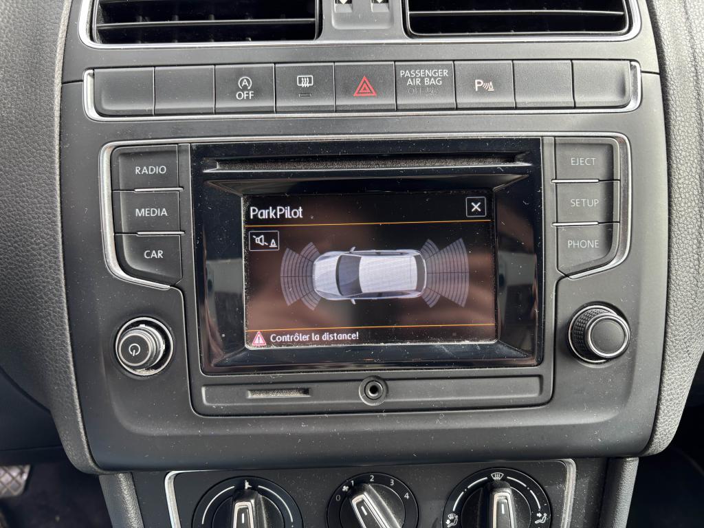 ‘Fatigue Detection' : Système de détection de fatigue du conducteur qui analyse le comportement du conducteur et recommande un temps de repos par l'apparition d'un message visuel et sonore3ème feu stop surélevé4 jantes en alliage léger 15'' ‘Estrada', pneumatiques 185/60 R15 avec écrous antivolAide au démarrage en côte ‘Hill-Hold'Airbag frontaux conducteur et passagerAirbags latéraux/tête avantAlerte de perte de pression des pneusAntenne arrière de pavillonAnti-patinage électronique ASRAppuis-tête (3) et ceintures de sécurité 3 points (3) sur la banquette arrièreAppuis-tête à sécurité optimisée à l'avant (2)Aumônières au dos des sièges avantAvertisseur sonore de non-extinction des phares et de non bouclage des ceintures de sécurité (conducteur et passager)Avertisseur sonore deux tonsBacs de rangement dans toutes les portières, à l'avant avec porte-boisson pour des bouteilles à 1,5LBanquette et dossier arrière asymétriques, rabattables 1/3-2/3, avec double plancher de coffre à bagagesBlocage électronique de différentiel EDSBoîte à gants réfrigéréeCache-bagagesCalandre noire avec baguette chroméeCarrosserie entièrement galvaniséeCeintures de sécurité trois points à l'avant, à enrouleur avec prétensionneurs, réglables en hauteurClignotants d‘autoroute (1 impulsion pour 3 coups de clignotants)Clignotants latéraux intégrés dans le rétroviseurClimatisation manuelle 'Climatic'Correcteur électronique de trajectoire ESP avec amplificateur de freinage d'urgenceCrochet pour sacs dans le coffre à bagagesDéflecteur de toit intégréDirection assistée électro-mécanique asservie à la vitesseDispositif de fixation pour deux sièges enfants suivant norme ISOFIX aux places extérieures arrièreEclairage blanc sur les instruments réglable en intensité, rouge sur les commandesEclairage du coffre à bagagesEssuie-glace arrière avec commande d'intermittence et lave-glaceEssuie-glace avant avec commande d'intermittence à 4 positions et lave-glaceFeux arrière de brouillardFeux de circulation de jour intégré dans le bouclier avantFiltre à poussière et à pollenGrille de prise d'air avec baguette chroméeHabillage complet du coffre à bagages en feutreInscription ‘BlueMotion Technology' à l'arrière du véhiculeInstrumentation avec tachymètre électronique, compteur kilométrique, totalisateur kilométrique journalier et compte-toursKit anticrevaison (compresseur et produit de colmatage)Lampes de lecture à l'avant (2) et à l'arrière (1)Miroir de courtoisie éclairé sur pare-soleil passager et conducteurMotorisations respectant les futures normes européennes d'émission ‘Euro 6'Oeilletons de fixation dans le coffreOrdinateur de bord ‘Plus'Pack Chrome intérieurPack connectivityPare-chocs couleur carrosseriePlafonnier à temporisation à l'avant avec contacteurs de portièrePoignée de frein à main en cuirPoignées de maintien amortiesPoignées de portes et rétroviseurs extérieur couleurs carrosseriePommeau de levier de vitesses en cuirPorte-boissons (2) à l'avantPrise 12V à l'avantProjecteurs et clignotants regroupés dans un bloc optique avec vitre transparenteProjecteurs halogènes doubles H7 et clignotants sous glace commune en verre clairProtection anti-démarrage Immotronic agréée SRA 7 clésRégulateur de vitesseRégulateur électronique de couple d'inertie MSRRépartiteur électronique de freinage EBVRétroviseur extérieur asphérique côté conducteurRétroviseur intérieur jour/nuit manuelRétroviseurs extérieurs réglables électriquement et dégivrantsSellerie en tissu, dessin ‘Rail'Sièges AV réglables en hauteurSticker sur la lunette arrière “Manufacturers' world rallye champions Volkswagen 2013”Support pour trousse de secours et triangle de pré signalisationSystème Audio & Infotainment ‘Composition Colour' avec écran couleur tactile 5'', 6 haut-parleurs (4x20 W)Système d'antiblocage des roues ABSSystème de freinage anti multicollision : ce dispositif freine automatiquement le véhicule après un premier choc afin de limiter le risque de multicollisionSystème de ventilation/chauffage 4 vitesses avec commande de fonctionnement en circuit ferméSystème Start/ Stop avec récupération d'énergie de freinageTableau de bord avec revêtement mousséTapis de sol avant et arrièreTémoins de contrôle et indicateur d'intervalle de révisionVerrouillage centralisé à distance, 2 clés pliantes de radiocommande fourniesVitres arrière électriquesVitres athermiques teintées vertesVitres avant électriquesVolant 3 branchesVolant multifonction cuir avec placages en chrome matVolant réglable en hauteur et en profondeur