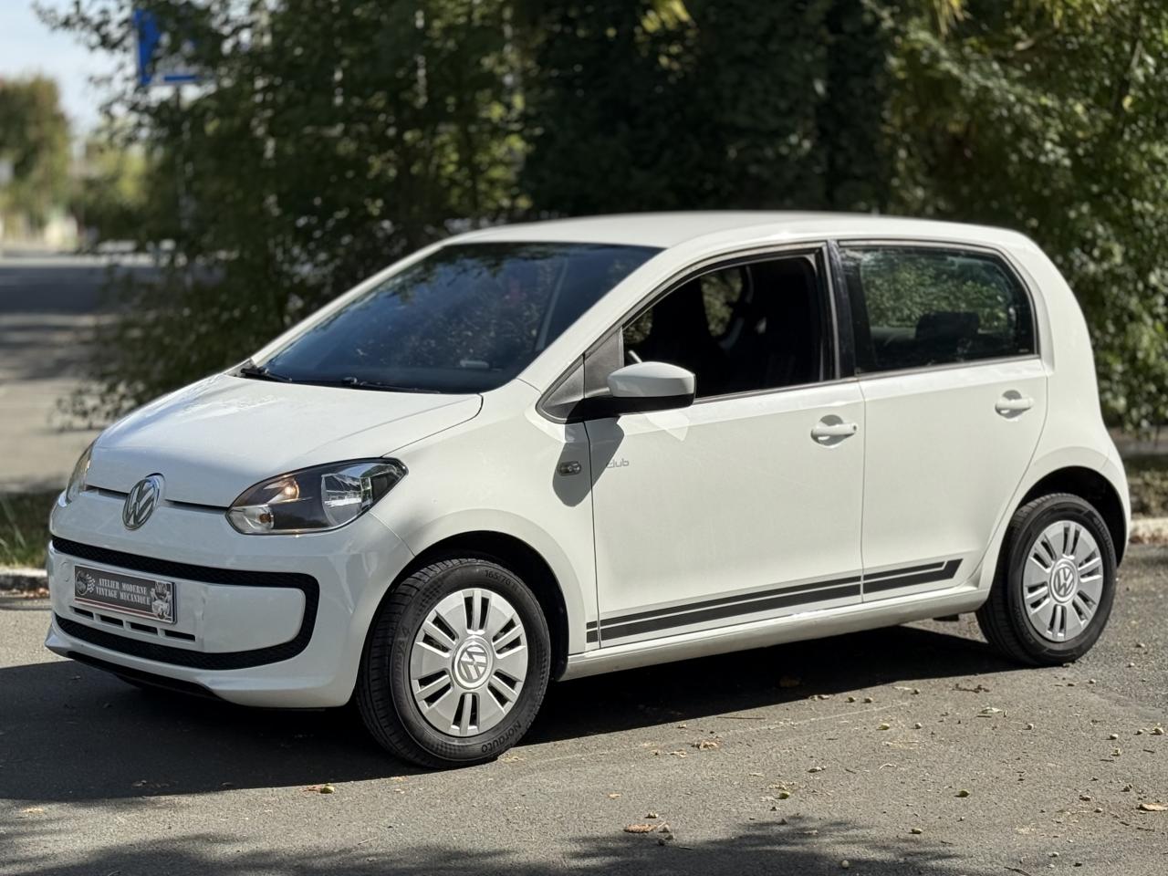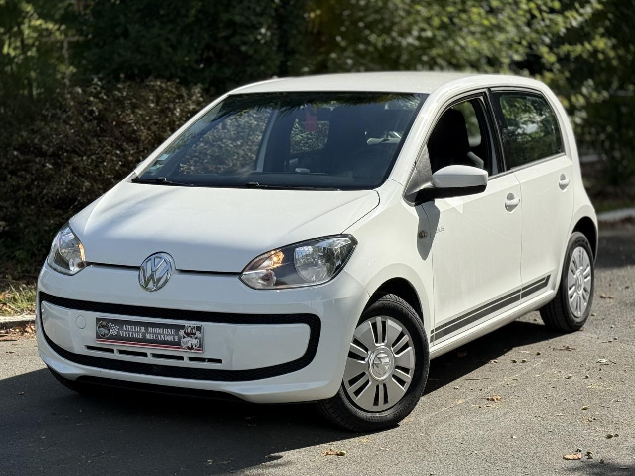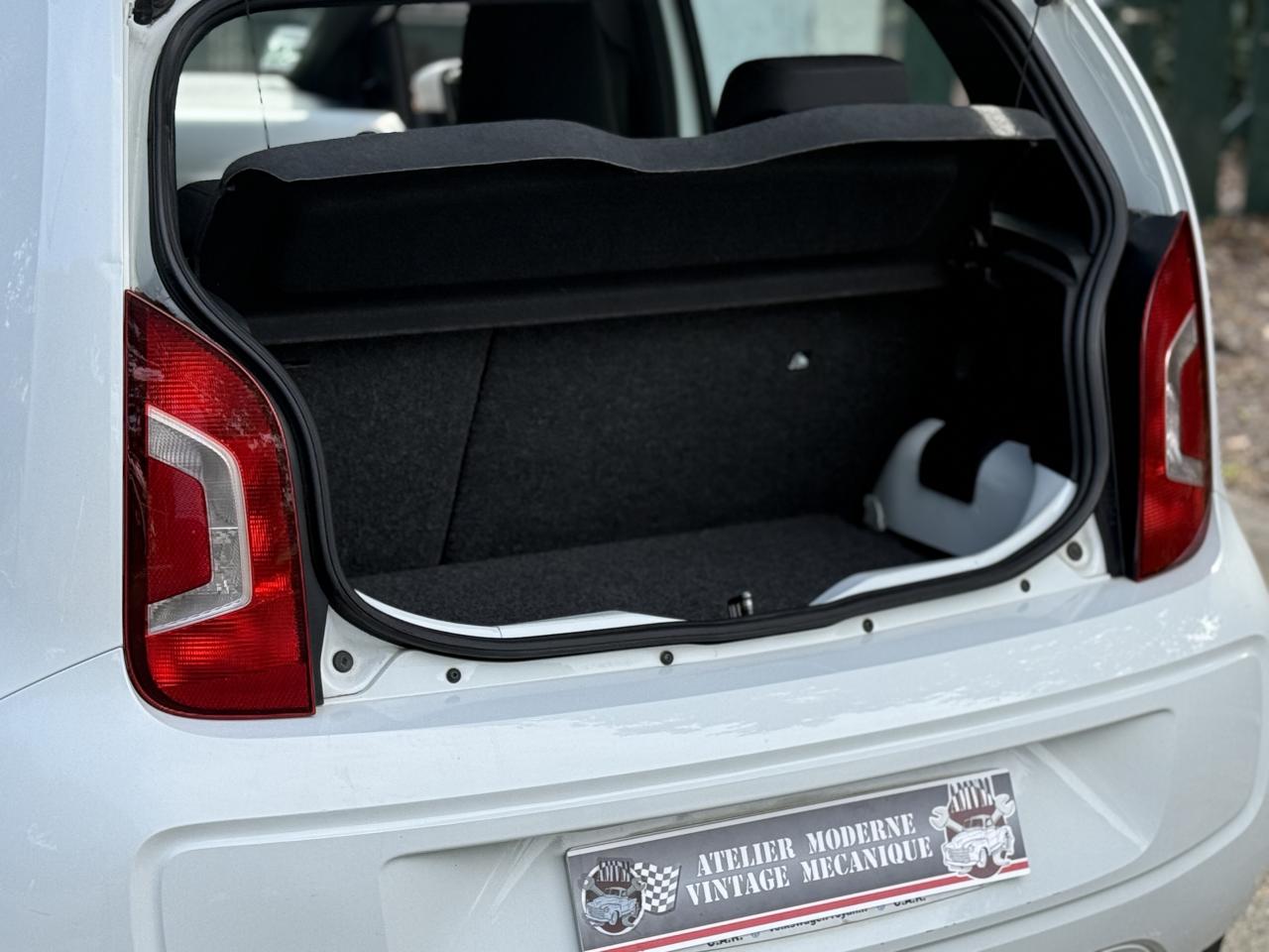 ‘RCD 215' : Radio CD 2 haut-parleurs (2 x 20 W) comprenant lecteur CD en façade, lecture des formats audio MP3 sur CD, prise multimédia ‘AUX-IN'3ème feu stop surélevé4 jantes en acier 6 J x 14 avec enjoliveurs spécifiques avec logo VW en aluminium et pneumatiques 165/70 R14Activation automatique des feux de détresse en cas de freinage d'urgenceAlerte de perte de pression des pneusAntenne arrière de pavillonAppuie-tête (2) et ceintures de sécurité 3 points (2) sur la banquette arrièreAppuis-tête intégrés dans les dossiers à l'avant (2)Avertisseur sonore deux tonsBacs de rangement dans les portières, avec porte-boisson pour des bouteilles de 1L à l'avantBanquette 2 places à l'arrièreBoîte à gants avec couvercleBoitiers de rétroviseurs extérieurs teinte carrosserie ou reflet d'argent en fonction de la couleur du véhiculeCache-bagagesCarrosserie partiellement galvaniséeCeintures de sécurité trois points à l'avant, à enrouleur avec prétensionneursClignotants d‘autoroute (1 impulsion pour 3 coups de clignotants)Clignotants latéraux intégrés dans les ailes avantClimatisation avec fonctionnement en circuit ferméCompte-toursConsole centrale comprenant un porte-boisson à l'avant et un à l'arrièreCorrecteur électronique de trajectoire ESP, amplificateur de freinage d'urgence, système d'antiblocage des roues ABS, antipatinage électronique ASR et régulateur électronique de couple MSR, aide au démarrage en côte ‘Hill Hold'Direction assistée électromécanique asservie à la vitesseDisques de frein ventilés à l'avantDossier de banquette arrière asymétrique, rabattable 60-40Double Airbags frontal à l'avantDouble Airbags latéral et de tête à l'avantDouble commande des vitres électriques avant côté conducteurDouble plancher du coffre à bagagesEclairage blanc sur les instruments réglable en intensité, rouge sur les commandesEclairage de coffreEssuie-glace arrière avec lave-glaceEssuie-glace avant avec commande d'intermittence et lave-glaceFeu arrière de brouillardFeux de circulation de jourInstrumentation avec tachymètre électronique, compteur kilométrique, totalisateur kilométrique journalierKit de dépannage en cas de crevaison : compresseur 12 volts et produit d'étanchéité de pneuLogos ‘club' sur les ailes avantLunette arrière dégivranteMiroir de courtoisie dans le pare-soleil du passager avantOEillets d'arrimage ISOFIX (dispositif pour fixation de 2 sièges-enfant sur la banquette arrière)Outillage de bordPack ‘chrome' intérieurPack ‘confort'Pack ‘maps+more'Pare-chocs couleur carrosseriePare-soleil pour le conducteur et le passager avantPlafonnier à temporisation à l'avant avec contacteurs de portièrePlanche de bord peintePoignée de frein à main et soufflet du levier de vitesse avec surpiqûres bleuesPoignées de portes peintes dans la couleur du véhiculePommeau de levier de vitesses exclusif avec logo ‘up!'Prise 12V à l'avantProjecteurs halogènes avec inserts chromésProtection anti-démarrage Immotronic agréée SRA 7 clésRétroviseur intérieur de sécurité à réglage jour/nuitRétroviseurs extérieurs réglables de l'intérieurSellerie exclusive en tissu, dessin ‘club'Seuils de portes avec logo ‘up!' à l'avantSignal d'avertissement acoustique et optique pour ceinture de sécurité conducteur non attachéeStripping latéral gris indium ou reflet d'argent en fonction de la couleur du véhiculeSystème de ventilation/chauffage 4 vitessesTapis de sol avant et arrièreVitres athermiques teintées vertesVitres entrebaillantes à l'arrièreVolant 3 branchesVolant cuir avec poignée de frein à main et pommeau de levier de vitesse en cuirVolant cuir exclusif avec applications laquées noir, logo ‘up!' et surpiqûres bleuesVolant réglable en hauteur