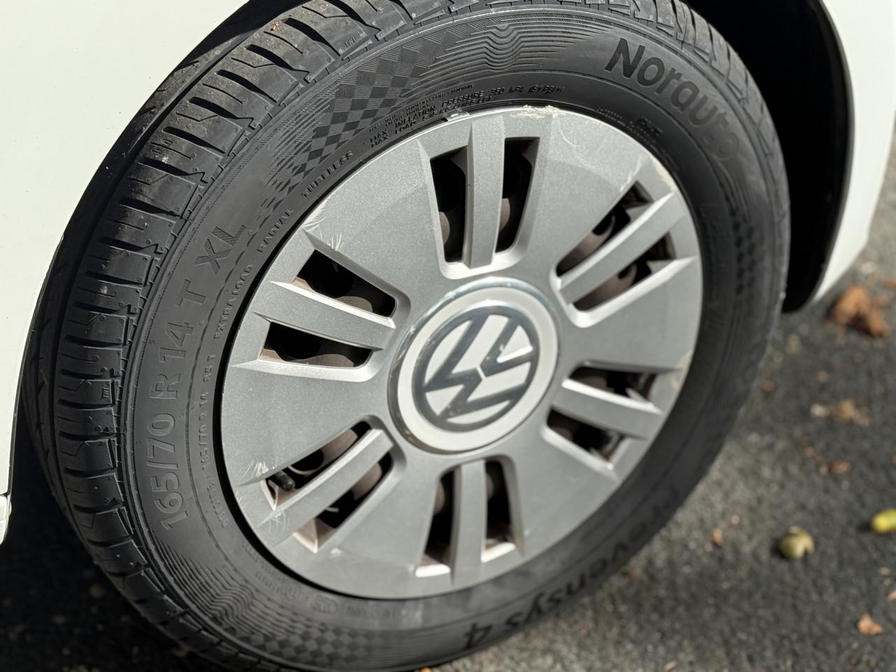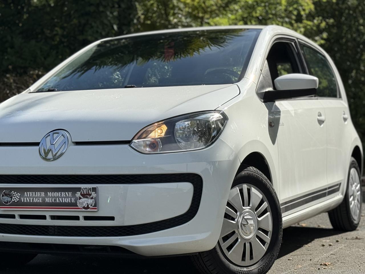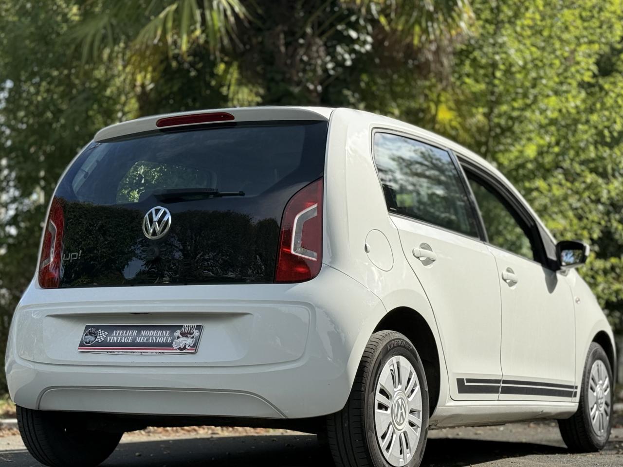 ‘RCD 215' : Radio CD 2 haut-parleurs (2 x 20 W) comprenant lecteur CD en façade, lecture des formats audio MP3 sur CD, prise multimédia ‘AUX-IN'3ème feu stop surélevé4 jantes en acier 6 J x 14 avec enjoliveurs spécifiques avec logo VW en aluminium et pneumatiques 165/70 R14Activation automatique des feux de détresse en cas de freinage d'urgenceAlerte de perte de pression des pneusAntenne arrière de pavillonAppuie-tête (2) et ceintures de sécurité 3 points (2) sur la banquette arrièreAppuis-tête intégrés dans les dossiers à l'avant (2)Avertisseur sonore deux tonsBacs de rangement dans les portières, avec porte-boisson pour des bouteilles de 1L à l'avantBanquette 2 places à l'arrièreBoîte à gants avec couvercleBoitiers de rétroviseurs extérieurs teinte carrosserie ou reflet d'argent en fonction de la couleur du véhiculeCache-bagagesCarrosserie partiellement galvaniséeCeintures de sécurité trois points à l'avant, à enrouleur avec prétensionneursClignotants d‘autoroute (1 impulsion pour 3 coups de clignotants)Clignotants latéraux intégrés dans les ailes avantClimatisation avec fonctionnement en circuit ferméCompte-toursConsole centrale comprenant un porte-boisson à l'avant et un à l'arrièreCorrecteur électronique de trajectoire ESP, amplificateur de freinage d'urgence, système d'antiblocage des roues ABS, antipatinage électronique ASR et régulateur électronique de couple MSR, aide au démarrage en côte ‘Hill Hold'Direction assistée électromécanique asservie à la vitesseDisques de frein ventilés à l'avantDossier de banquette arrière asymétrique, rabattable 60-40Double Airbags frontal à l'avantDouble Airbags latéral et de tête à l'avantDouble commande des vitres électriques avant côté conducteurDouble plancher du coffre à bagagesEclairage blanc sur les instruments réglable en intensité, rouge sur les commandesEclairage de coffreEssuie-glace arrière avec lave-glaceEssuie-glace avant avec commande d'intermittence et lave-glaceFeu arrière de brouillardFeux de circulation de jourInstrumentation avec tachymètre électronique, compteur kilométrique, totalisateur kilométrique journalierKit de dépannage en cas de crevaison : compresseur 12 volts et produit d'étanchéité de pneuLogos ‘club' sur les ailes avantLunette arrière dégivranteMiroir de courtoisie dans le pare-soleil du passager avantOEillets d'arrimage ISOFIX (dispositif pour fixation de 2 sièges-enfant sur la banquette arrière)Outillage de bordPack ‘chrome' intérieurPack ‘confort'Pack ‘maps+more'Pare-chocs couleur carrosseriePare-soleil pour le conducteur et le passager avantPlafonnier à temporisation à l'avant avec contacteurs de portièrePlanche de bord peintePoignée de frein à main et soufflet du levier de vitesse avec surpiqûres bleuesPoignées de portes peintes dans la couleur du véhiculePommeau de levier de vitesses exclusif avec logo ‘up!'Prise 12V à l'avantProjecteurs halogènes avec inserts chromésProtection anti-démarrage Immotronic agréée SRA 7 clésRétroviseur intérieur de sécurité à réglage jour/nuitRétroviseurs extérieurs réglables de l'intérieurSellerie exclusive en tissu, dessin ‘club'Seuils de portes avec logo ‘up!' à l'avantSignal d'avertissement acoustique et optique pour ceinture de sécurité conducteur non attachéeStripping latéral gris indium ou reflet d'argent en fonction de la couleur du véhiculeSystème de ventilation/chauffage 4 vitessesTapis de sol avant et arrièreVitres athermiques teintées vertesVitres entrebaillantes à l'arrièreVolant 3 branchesVolant cuir avec poignée de frein à main et pommeau de levier de vitesse en cuirVolant cuir exclusif avec applications laquées noir, logo ‘up!' et surpiqûres bleuesVolant réglable en hauteur