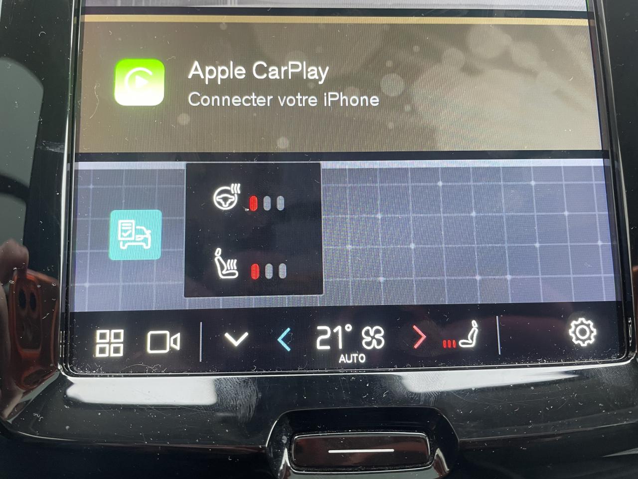 2 prises USB type-C4 points d'ancrage dans les panneaux latéraux du compartiment à bagagesAccès au service d'urgence et d'assistance Volvo via bouton SOS dans le plafonnierAccoudoir central avant avec porte-gobeletsAffichage tête haute couleurAirbag genoux conducteurAirbag passager désactivable avec témoin d'indication (on/off)Airbags conducteur et passager à déclenchement différenciéAirbags latéraux conducteur et passager SIPS-BAGAirbags rideauxAlerte Distraction Trafic (Ready to drive notification)Alerte franchissement de ligne activeAllumage automatique des projecteursApplication Volvo Cars sur smartphone iOS ou AndroidAppuis-tête arrière rabattables électriquementAssise des sièges avant à absorption d'énergieAssistance au démarrage en côteBouclier avant et Diffuseur arrière spécifiques avec inserts Noir LaquéBouton de verrouillage centraliséCâble de recharge de 4,5 mètres avec LED d'indication de chargeCalandre spécifique avec incrustations et contour Noir LaquéCaméra de reculCapteur de pluieCeintures de sécurité à inertie à 3 points d'ancrage sur les 5 siègesCeintures de sécurité actives à prétensionneursChargeur de téléphone portable à inductionChâssis DynamiqueCity Safety, système d'anticipation de collision intelligentClimatisation automatique bi-zone avec système de recirculation d'air et filtre anti-pollenCombiné d'instruments digital 12,3” nouvelle générationCommande vocale avancéeCommandes audio au volantConnexion BluetoothContour des vitres latérales Noir LaquéContrôle de la stabilité au roulis RSCCoques de rétroviseurs noir laquéCorrecteur électronique de trajectoire (ESC)Déclenchement automatique des feux de détresse lors d'un freinage d'urgenceDétecteur d'humiditéDirection assistée électrique asservie à la vitesseDossier arrière rabattable 60 / 40Eclairage d'accompagnement et éclairage d'approcheEclairage de coffreEclairage de la boîte à gantsEclairage des pieds à l'avantEclairage intérieur temporiséEcran tactile multimédia haute résolution 9”, personnalisableEnvoi automatique d'une alerte au service d'urgence Volvo en cas de collisionFeux antibrouillard arrièreFeux arrière à LEDFeux de freinage d'urgenceFeux de jourFilet de protection coffre / habitacleFonction climatisation de l'habitacle moteur coupéFonction Start/StopFrein de parking électronique automatiqueFreinage automatique post-collisionFreins à disques 18” ventilés à l’avant, 17” à l'arrièreHayon électriqueIncrustations Aluminium MailléIndicateur de perte de pression des pneusInfotainment Google Android avec services Automotive et Google MapsInserts Noir Laqué sur le bouclier avant et arrièreIntelligent Speed Assist (Adaptation intelligente de la vitesse)IntelliSafe SurroundJantes alliage 20” 6 branches Noir / Diamant, 255/45 R20Kit anti-crevaisonMiroirs de courtoisie éclairésMise à jour du système à distanceMode de conduite personnalisable : Pure, Hybrid, Power, AWD, Off RoadOne pedal drive - Accélération et décélération gérées grâce à une pédale uniqueOrdinateur de bordOuverture des portes sans clé Keyless Entry incluant éclairage du sol dans les poignées de porte avant et hayon électrique avec fonction Confort (sans les mains)Pack EclairagePack HiverPack IntelliSafe AssistPack MémoirePack visibilitéPare-brise en verre feuilleté et colonne de direction rétractable en cas de chocPare-chocs arrière avec sorties d'échappement intégréesPare-chocs arrière couleur carrosseriePare-chocs AV couleur carrosseriePavillon de toit coloris BeigePédale de frein rétractable en cas de collisionPeinture métallisée Gris BrumePlanche de bord gainée de simili-cuirPommeau de levier de vitesses en simili-cuirPort de recharge sur l'aile avant gauchePorte-ticket de parking et d'autoroutePrécâblage électrique pour crochet d'attelagePréconditionnement de l'habitacle (chauffage ou climatisation)Préparation pour siège enfant ISOFIX pour sièges latéraux arrièrePrise 12V dans le coffreRadar de stationnement avant et arrière avec signal sonore et visuelRadio numérique terrestreRails de toit finition noir laquéRappel d'oubli de bouclage des ceintures de sécurité avant et arrièreRappels de clignotants à LED intégrés aux rétroviseurs extérieursReconnaissance des panneaux de signalisationRétroviseur extérieur conducteur grand angleRétroviseur intérieur électrochrome sans contourRétroviseurs extérieurs photochromatiquesRétroviseurs extérieurs rabattables électriquementSécurité connectée : Alerte Feux de détresse et Chaussée glissanteSellerie Cuir avec Sièges confort AnthraciteSeuil de coffre en aluminiumSeuils de portes en Aluminium à l'avant badgés VolvoSièges avant réglables en hauteur électriquementSonde de température extérieure et horlogeSpots de lecture à l'avantStructure de l'habitacle renforcée à l'acier de BoreSubwooferSystème audio Volvo Harman Kardon Premium Sound, Amplificateur 12 canaux de 600 W, 14 HP dont un subwoofer, systèmes Dolby Pro Logic II et Dolby Surround 5.0 Cinéma Edition, technologie d’amélioration du son Dirac Live et commande vocale avancéeSystème de contrôle de la descente (HDC)Système de contrôle de la stabilité et de la traction STCSystème de contrôle du freinage du véhicule VDCSystème de filtration de l’air CleanZone Advanced avec indication de la qualité de l’airSystème de protection anti-sortie de routeSystème de protection collision frontaleSystème de récupération de l'énergie au freinageSystème de réglage en hauteur des pharesSystème de surveillance de la vigilance du conducteurSystème intelligent d'informations au conducteur IDISTapis de sol textile à l'avant et à l'arrièreTélécommande de verrouillage centralisé avec clé de contact intégrée, fermeture à distance des vitres et du toit ouvrant et fonction panique (déclenchement du klaxon et des feux de détresse)Toit ouvrant panoramique en deux par