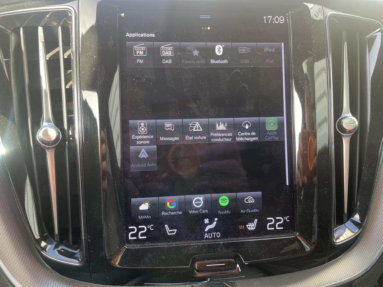 2 Prises USB4 points d'ancrage dans les panneaux latéraux du compartiment à bagagesAccoudoir central avant avec porte-gobeletsAirbag genoux conducteurAirbag passager désactivable avec témoin d'indication (on/off)Airbags conducteur et passager à déclenchement différenciéAirbags latéraux conducteur et passager SIPS-BAGAirbags rideauxAlerte franchissement de ligne activeAllumage automatique des projecteursAppuis-tête arrière rabattables électriquementAssise des sièges avant extensibleAssistance au démarrage en côteBouclier arrière avec inserts chromésBouton de verrouillage centraliséCâble de recharge de 4,5 mètres avec LED d'indication de chargeCalandre avec contour chromé et inserts verticaux Noir Laqué et chromésCapteur de pluieCeintures de sécurité à inertie à 3 points d'ancrage sur les 5 siègesCity Safety, système d'anticipation de collision intelligentClé gainée de CuirCombiné d'instruments digital 12,3” personnalisableCommande vocale avancéeCommandes audio au volantConnexion BluetoothContour des vitres latérales chroméContrôle de la stabilité au roulis RSCCorrecteur électronique de trajectoire (ESC)Déclenchement automatique des feux de détresse lors d'un freinage d'urgenceDétecteur d'humiditéDirection assistée électrique asservie à la vitesseDossier arrière rabattable 60 / 40Double sortie d'échappement rectangulaire chromée intégréeEclairage d'accompagnement et éclairage d'approcheEclairage de la boîte à gantsEclairage des pieds à l'avantEclairage intérieur temporiséEcran tactile multimédia haute résolution 9”, personnalisableFeux antibrouillard arrièreFeux arrière à LEDFeux de freinage d'urgenceFeux de jourFilet de protection coffre / habitacleFonction climatisation de l'habitacle moteur coupéFonction Eco+ : optimisation des paramètres véhicule pour une conduite économique et écologiqueFonction Start/StopFrein de parking électronique automatiqueFreinage automatique post-collisionHayon électriqueIncrustations en Bois FlottéIndicateur de perte de pression des pneusInsert chromé sur les bas de caisse latérauxJantes alliage 19” 10 branches Anthracite / Diamant avec pneus 235/55 V R19Kit anti-crevaisonLimitateur et régulateur de vitesseMiroirs de courtoisie éclairésMode de conduite personnalisable via une molette sur la console centraleOrdinateur de bordOuverture des portes sans clé Keyless Entry incluant éclairage du sol dans les poignées de porte avant et Keyless mini-télécommande + Hayon électrique avec fonction Confort (sans les mains)Pack EclairagePack HiverPack Intellisafe ProPack Premium Navigation et StationnementPack PrestigePack StationnementPare-brise en verre feuilleté et colonne de direction rétractable en cas de chocPhares LED avec correcteur dynamique de la portée et feux de jour design marteau de ThorPlanche de bord gainée de simili-cuirPommeau de levier de vitesses exclusif en cristal d'OrreforsPort de recharge sur l'aile avant gauchePorte-ticket de parking et d'autoroutePrécâblage électrique pour crochet d'attelagePréconditionnement de l'habitacle (chauffage ou climatisation)Préparation pour siège enfant ISOFIX pour sièges latéraux arrièrePrise 12V dans le coffreRadio numérique terrestreRails de toit couleur aluminiumRappel d'oubli de bouclage des ceintures de sécurité avant et arrièreRappels de clignotants à LED intégrés aux rétroviseurs extérieursReconnaissance des panneaux de signalisationRétroviseur extérieur conducteur grand angleRétroviseur intérieur électrochrome sans contourRétroviseurs extérieurs couleur carrosserieRétroviseurs extérieurs photochromatiquesRétroviseurs extérieurs rabattables électriquementSac de rangement pour câble de recharge électriqueSécurité connectée : Alerte Feux de détresse et Chaussée glissanteSellerie Cuir avec Sièges confortSeuil de coffre en aluminiumSeuils de portes en Aluminium à l'avant badgés RechargeSiège conducteur à réglages électriques avec mémoireSièges à réglage lombaire électrique 4 positions à l'avantSièges avant réglables en hauteur électriquementSonde de température extérieure et horlogeSpots de lecture à l'avantStructure de l'habitacle renforcée à l'acier de BoreSubwooferSystème de contrôle de la descente (HDC)Système de contrôle de la stabilité et de la traction STCSystème de contrôle du freinage du véhicule VDCSystème de protection anti-sortie de routeSystème de protection collision frontaleSystème de protection en cas de sortie de route comprenant : Ceintures de sécurité actives à prétensionneurs, Assise des sièges avant à absorption d’énergie et Pédale de frein rétractable en cas de collision frontaleSystème de récupération de l'énergie au freinageSystème de réglage en hauteur des pharesSystème de surveillance de la vigilance du conducteurSystème intelligent d'informations au conducteur IDISTapis de sol textile à l'avant et à l'arrièreTélécommande de verrouillage centralisé avec clé de contact intégrée, fermeture à distance des vitres et du toit ouvrant et fonction panique (déclenchement du klaxon et des feux de détresse)Transmission intégrale AWD à 4 roues motrices,gérée par électronique avec système Instant TractionTrappe à carburant intelligente sans bouchonTrousse de 1er secours, triangle de présignalisationVerrouillage automatique des portes à partir de 7 km/hVerrouillage manuel de sécurité enfantVitres avant et arrière électriques à impulsion (montée et descente) avec système anti-pincementVitres teintées à 25 %Volant en Cuir avec inserts Aluminium et Noir LaquéVolant réglable en hauteur et en profondeurVolvo On Call
